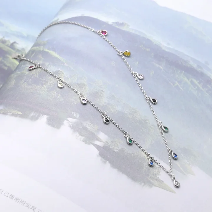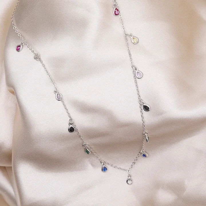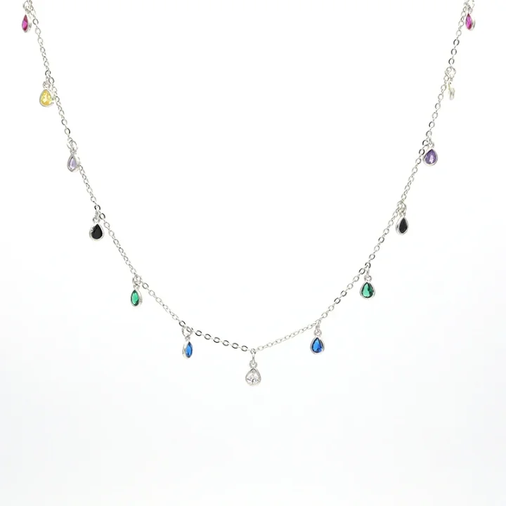 Custom Colorful Drop Zircon Hanging Chain Necklace Bunte Halskette 925 Sterling Silver Necklace Women